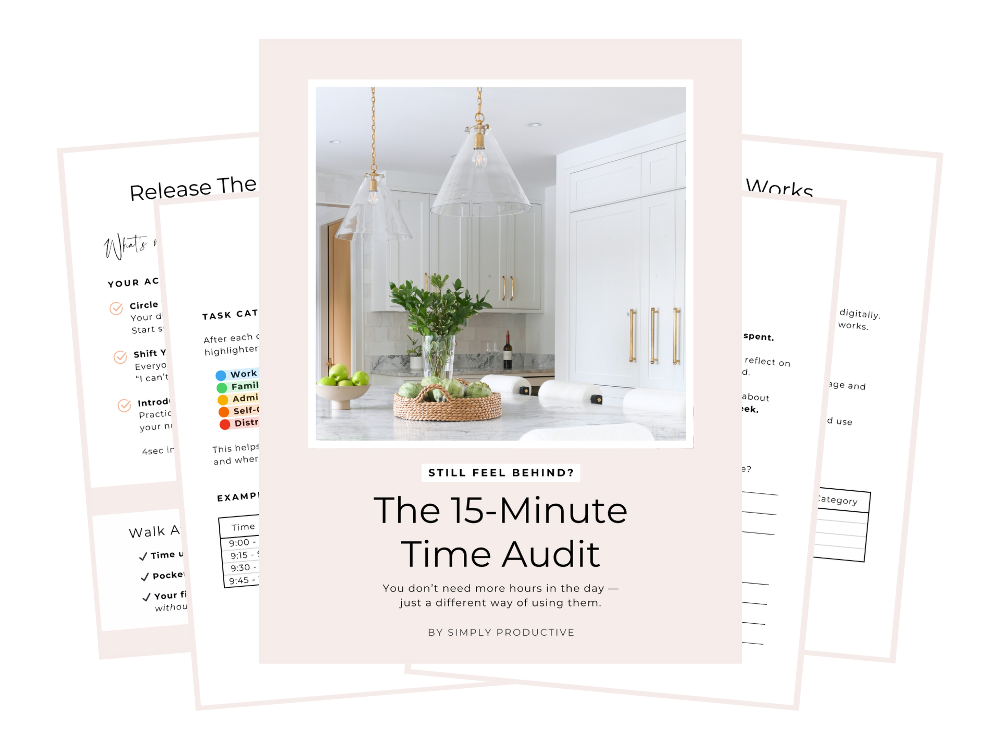 Download my step-by-step guide to audit your time in a day – uncover energy drains and identify time leaks so you can do more of what you love.